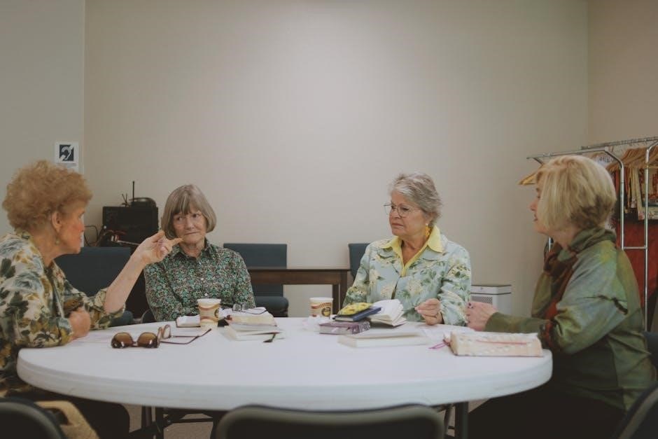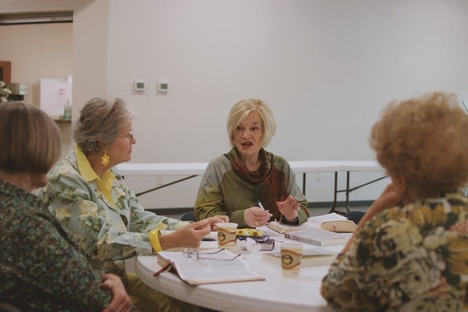 Encourage open and thoughtful dialogue by asking open-ended questions that prompt personal reflection and biblical application. Leaders should actively listen, ensuring all voices are heard, and guide the conversation without dominating it. Use Bible study PDFs to provide discussion prompts or reflection exercises. Foster a safe environment where members feel comfortable sharing their thoughts and experiences. Address differing opinions respectfully, emphasizing unity in Christ. Encourage vulnerability and authenticity, helping the group connect Scripture to real-life challenges. This approach fosters spiritual growth, deeper relationships, and a greater understanding of God’s Word. Meaningful discussions strengthen the group’s bond and faith journey together.